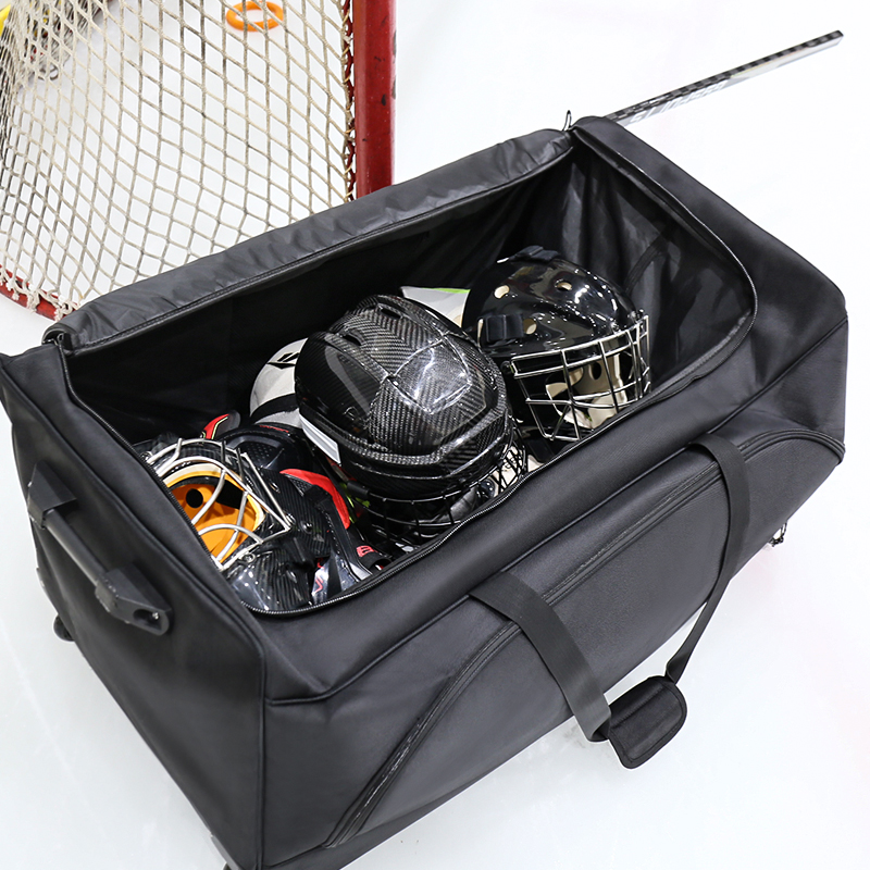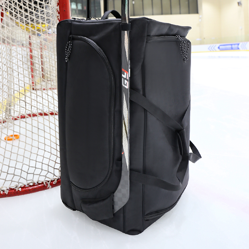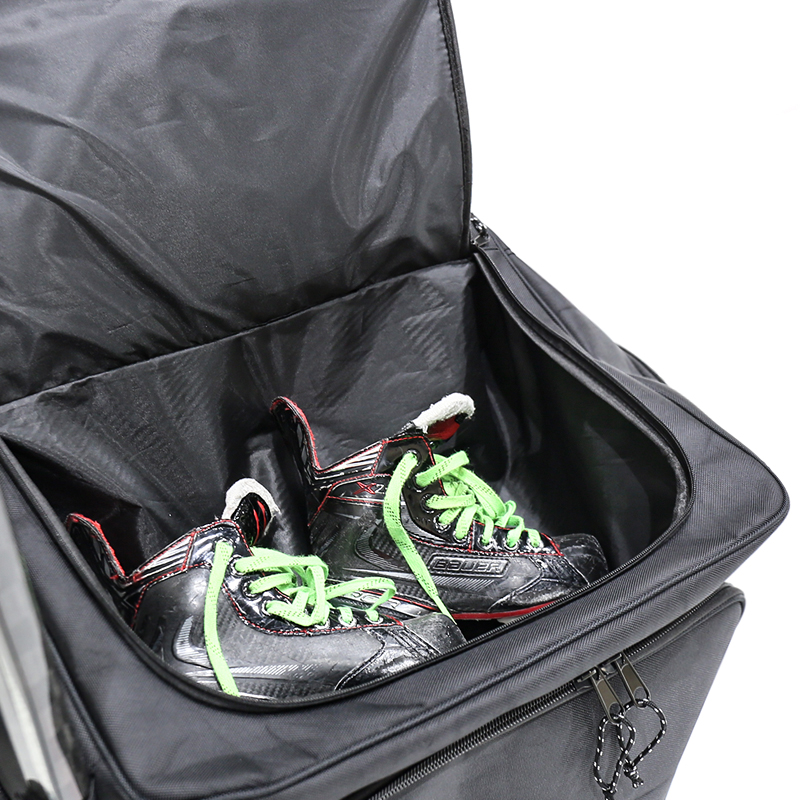 Prostorný úložný prostor: Velký hlavní kompartment je navržen tak, aby vyhovoval všem vašim hokejovým nákladům, včetně bruslí, polštářků, rukavic a přilby, což zajišťuje, že je vše organizováno a snadno přístupné.